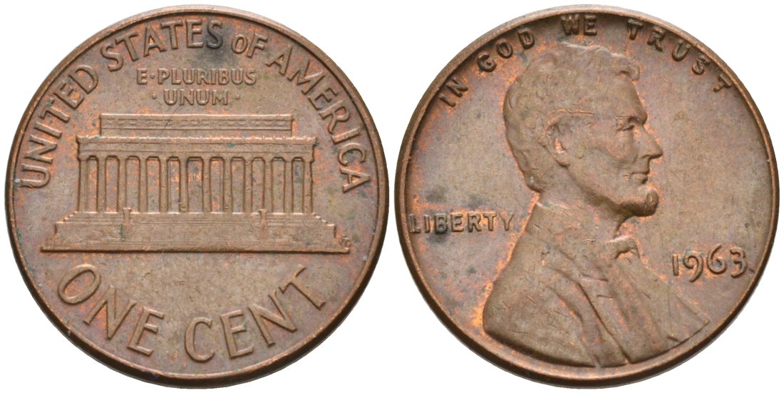 США 1 цент 1963 Линкольн KM 201 медь цинк 4564-416