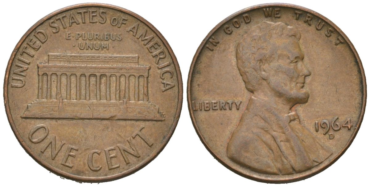 США 1 цент 1964 D, Авраам Линкольн KM 201 медь цинк 220-844