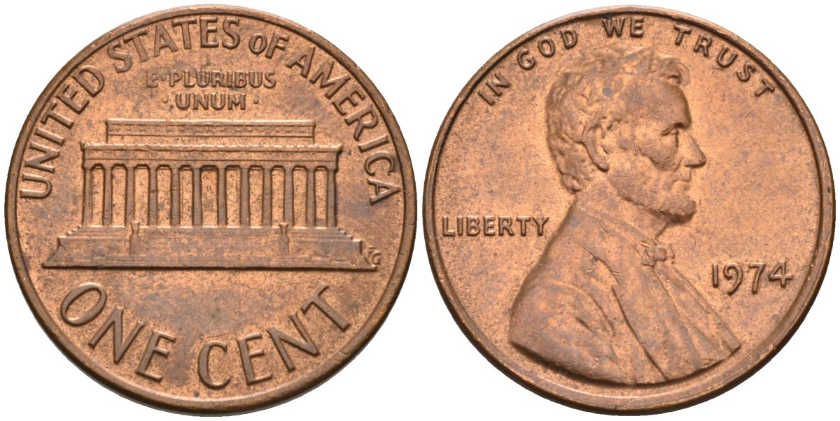 США 1 цент 1974 Линкольн KM 201 медь цинк 4580-416