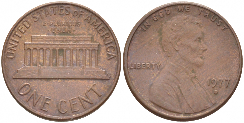 США 1 ЦЕНТ 1977 D, ЛИНКОЛЬН KM 201 медь цинк 3457-1247