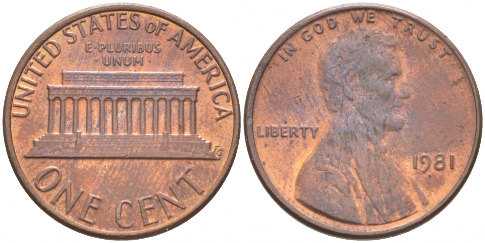 США 1 ЦЕНТ 1981 ЛИНКОЛЬН KM 201 медь цинк 3457-1253