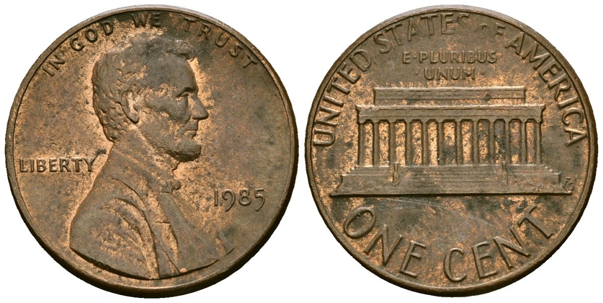США 1 цент 1985 Линкольн KM 201b цинк плакированный медью 4136-264