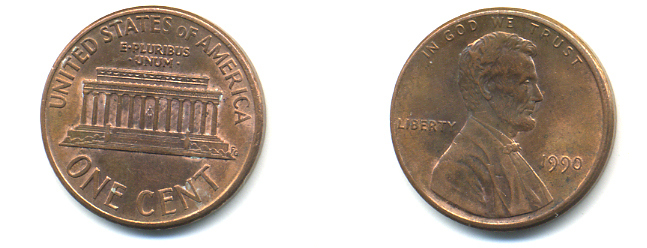 США 1 ЦЕНТ 1990 ЛИНКОЛЬН KM 201b цинк плакированный медью 179-432