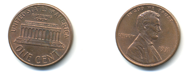 США 1 ЦЕНТ 1991 ЛИНКОЛЬН KM 201b цинк плакированный медью UNC 179-439