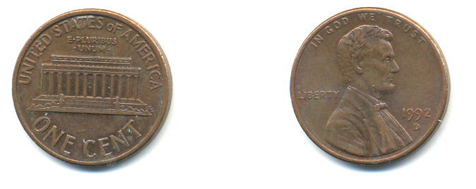 США 1 ЦЕНТ 1992 D, ЛИНКОЛЬН KM 201b цинк плакированный медью 179-445