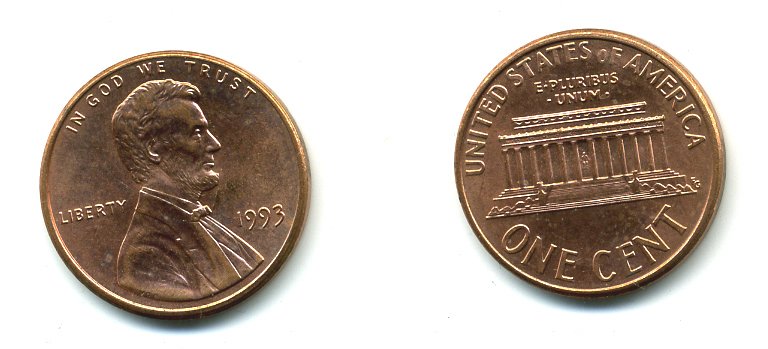 США 1 цент 1993 Авраам Линкольн KM 201b цинк плакированный медью 46-825