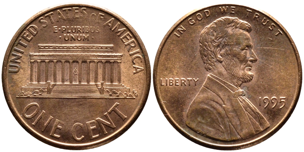 США 1 ЦЕНТ 1995 ЛИНКОЛЬН KM 201b цинк плакированный медью 4178-266