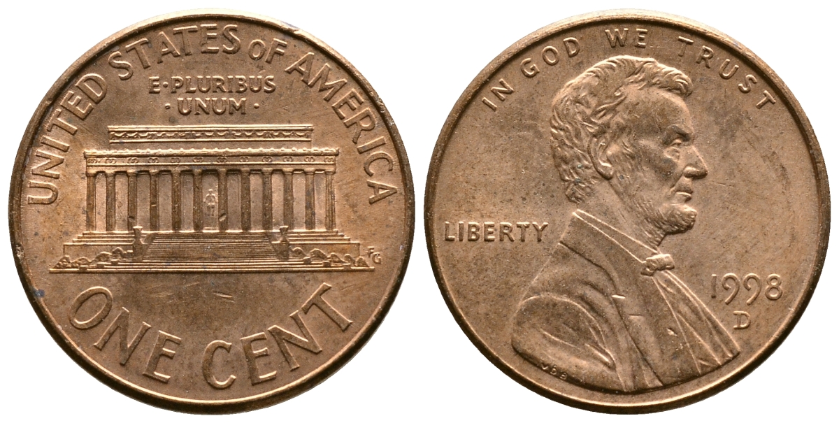 США 1 ЦЕНТ 1998 D, ЛИНКОЛЬН KM 201b цинк плакированный медью 72-1029