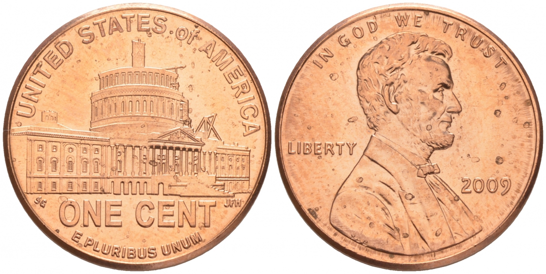США 1 ЦЕНТ 2009 P, СЕРИЯ 200 ЛЕТ СО ДНЯ РОЖДЕНИЯ АРААМА ЛИНКОЛЬНА - ПРЕЗИДЕНСТВО В ВАШИНГТОНЕ KM 444 цинк плакированный медью UNC M32-7