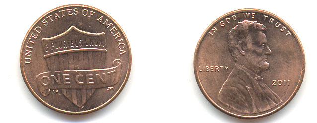США 1 ЦЕНТ 2011 ЛИНКОЛЬН KM NEW цинк плакированный медью UNC 179-631