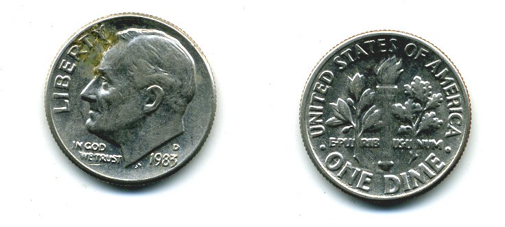 США 10 ЦЕНТОВ = 1 ДАЙМ 1983 D, РУЗВЕЛЬТ KM 195а медь плакированная медно-никелем 4364-357
