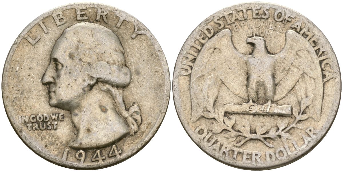 США 25 центов = квотер 1944 Вашингтон KM 164 серебро 4573-1227