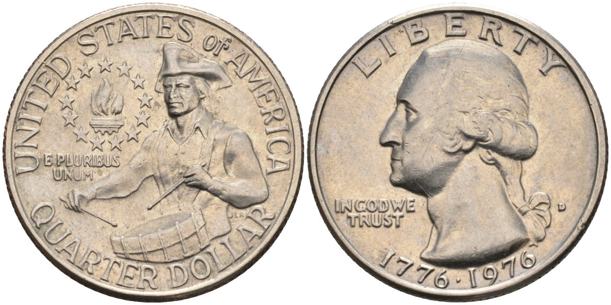 США 25 центов = квотер 1976 D, 200 лет независимости (1776-1976), Вашингтон, барабанщик KM 204 медь плакированная медно-никелем 4584-1044