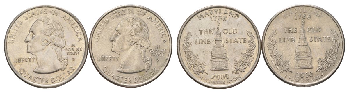 США набор обоих монетных дворов 25 центов (квотер, 1/4 доллара) 2000 D и P, Квотер штата Мэриленд KM 306 медь плакированный медно-никелем UNC 4628-1126-1127