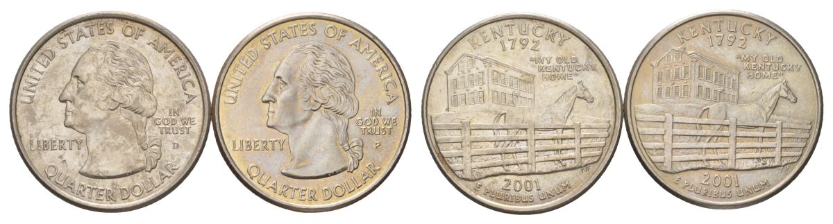 США набор обоих монетных дворов 25 центов (квотер, 1/4 доллара) 2001 D и P, Квотер штата Кентукки KM 322 медь плакированный медно-никелем UNC 4628-1156-1157