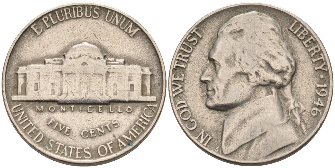 США 5 центов 1946 Джефферсон KM А192 медно-никель 92-953