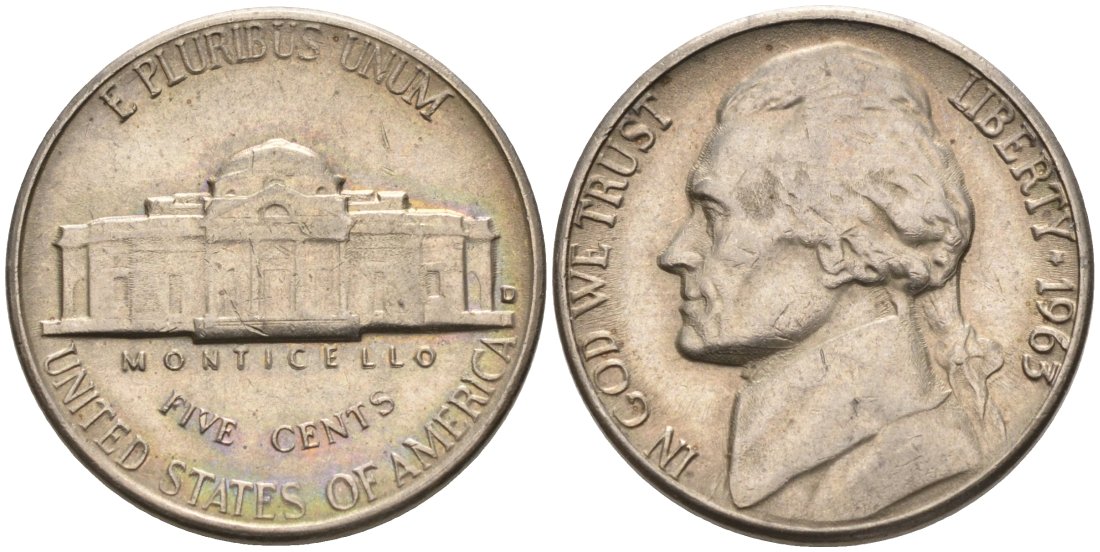 США 5 центов 1963 D, Джефферсон KM А192 медно-никель 92-1052