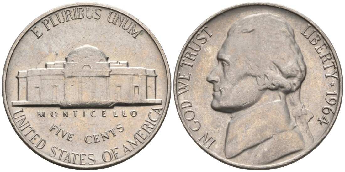 США 5 центов 1964 Джефферсон KM А192 медно-никель 92-1054