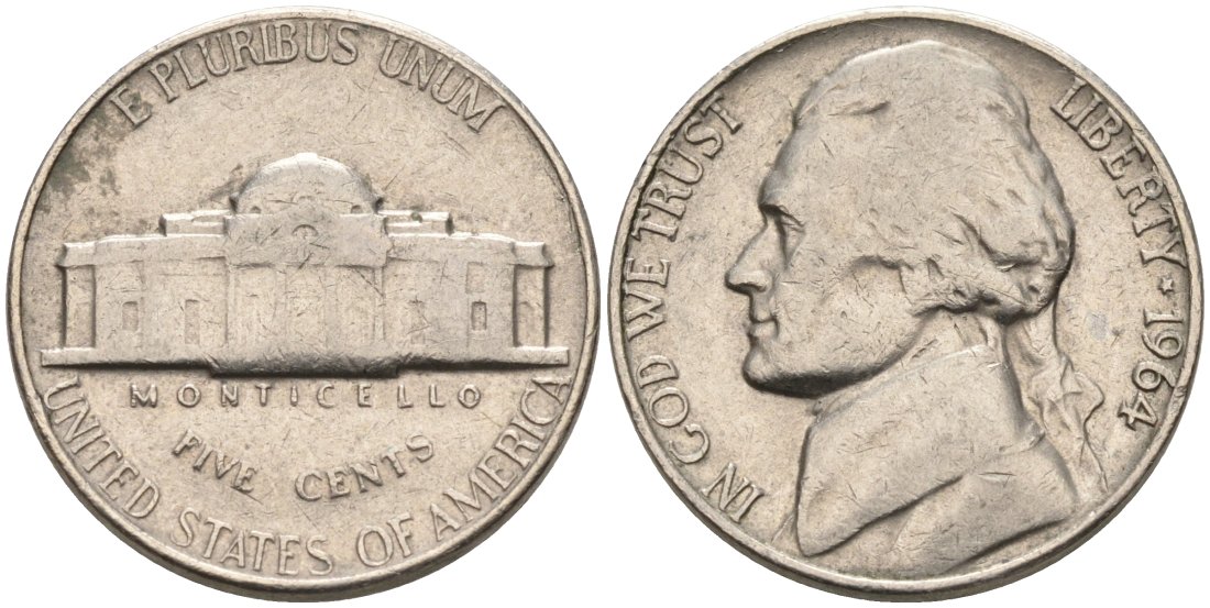 США 5 центов 1964 Джефферсон KM А192 медно-никель 92-1115