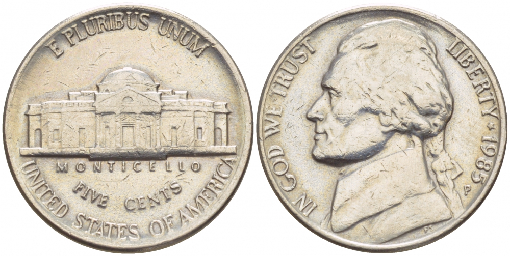 США 5 ЦЕНТОВ 1985 P, ДЖЕФФЕРСОН KM А192 медно-никель 4546-1211