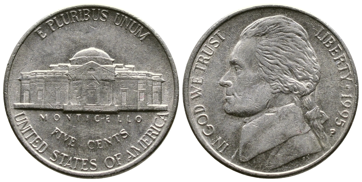 США 5 ЦЕНТОВ 1995 P, ДЖЕФЕРСОН KM А192 медно-никель 37-812