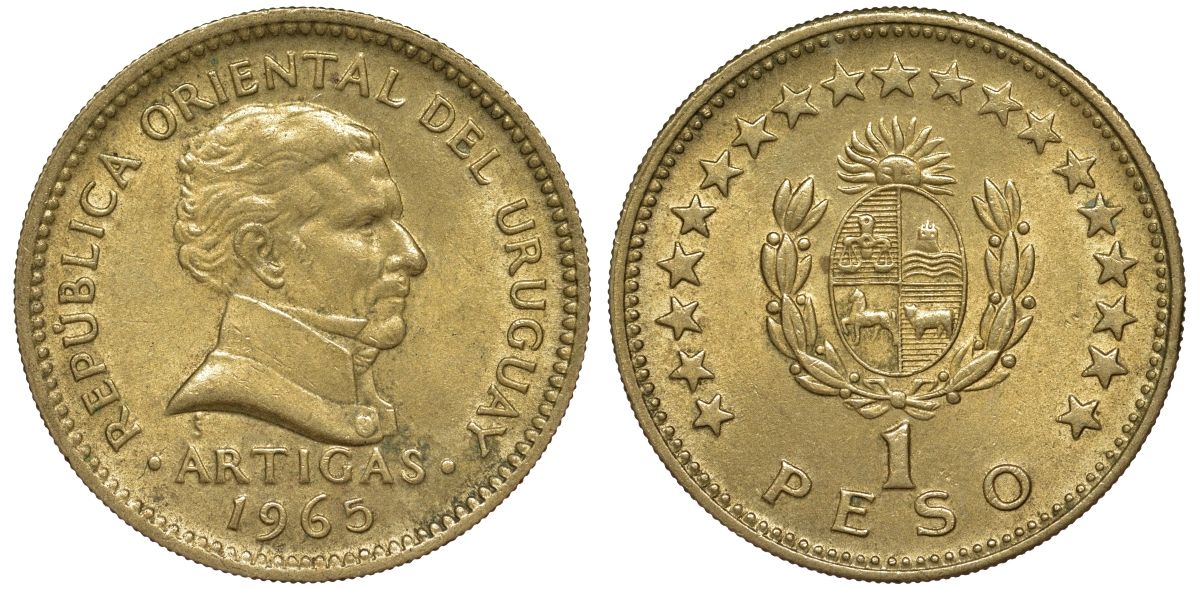Уругвай 1 песо 1965 KM 46 алюминиевая бронза 106-1147