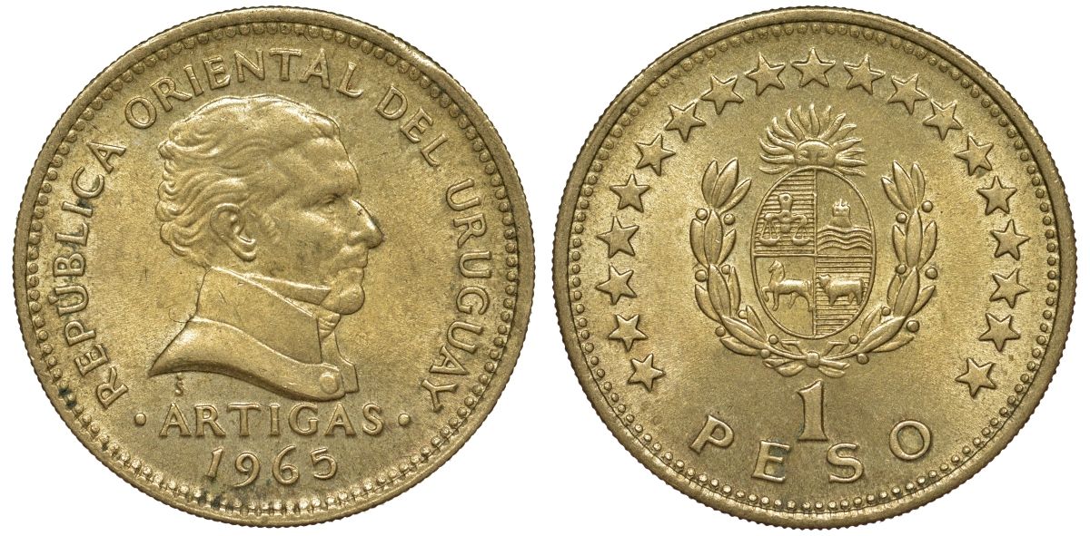 Уругвай 1 песо 1965 KM 46 алюминиевая бронза 106-254