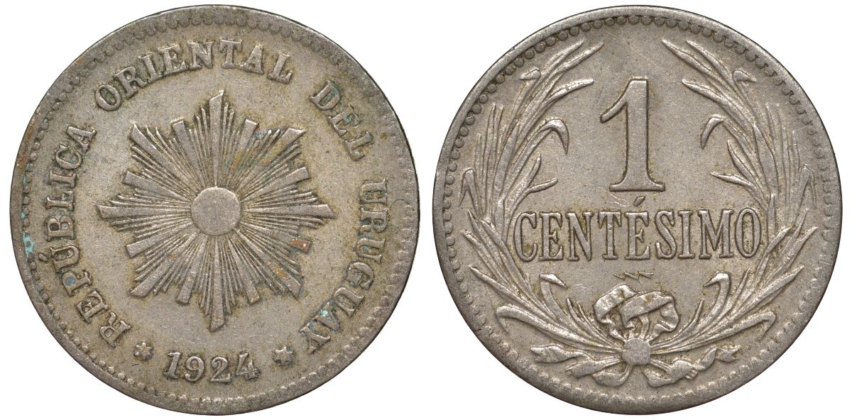 Уругвай 1 сентесимо 1924 KM 19 медно-никель 187-1028