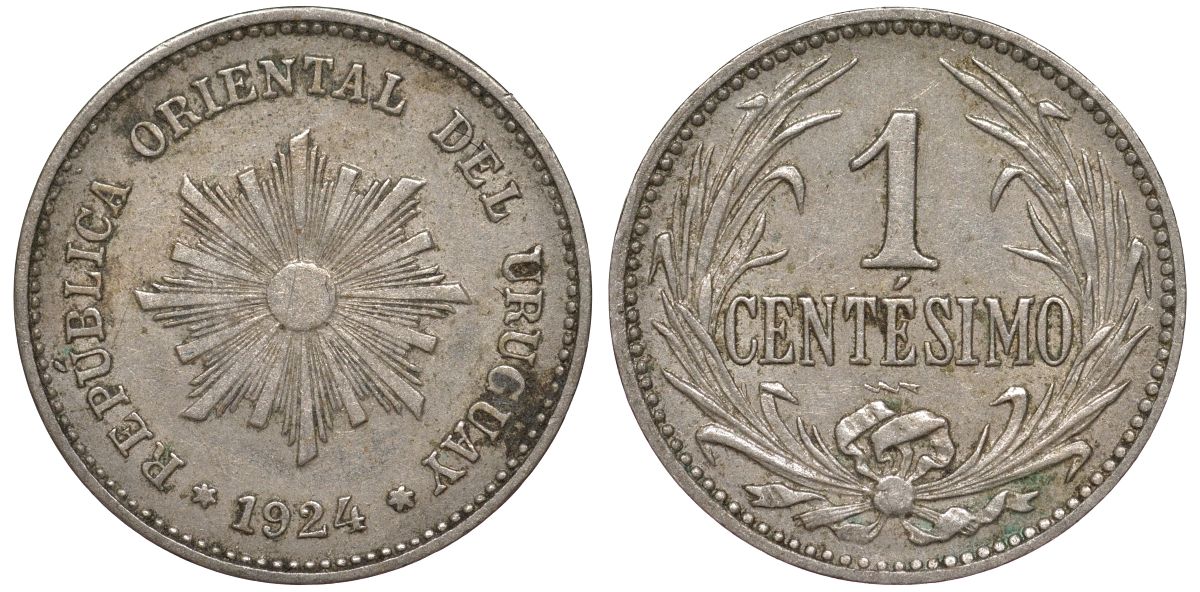Уругвай 1 сентесимо 1924 KM 19 медно-никель 99-1038