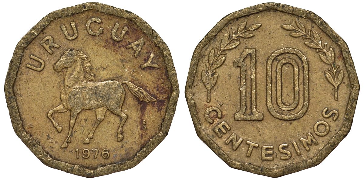 Уругвай 10 сентесимо 1976 KM 66 алюминиевая бронза 4164-639