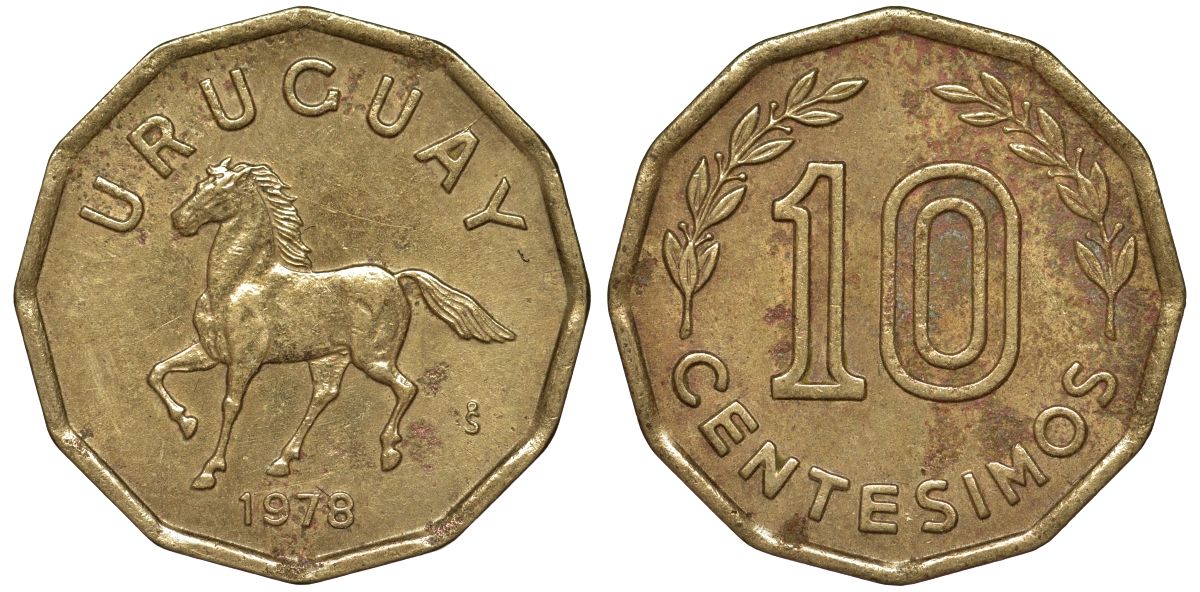 Уругвай 10 сентесимо 1978 KM 66 алюминиевая бронза 4164-766