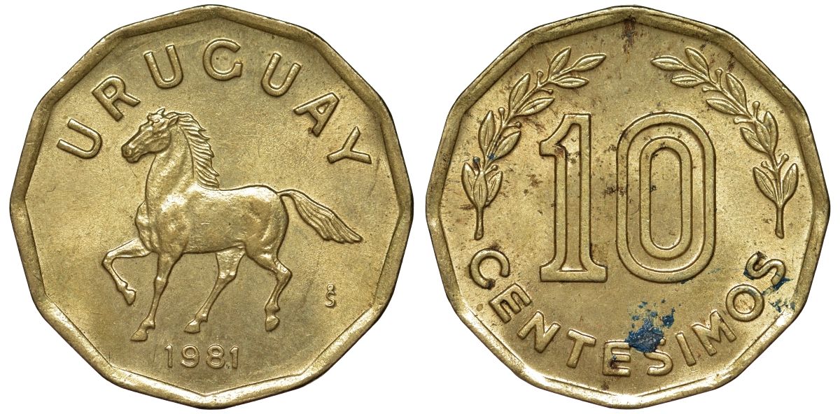 Уругвай 10 сентесимо 1981 KM 66 алюминиевая бронза 4169-534