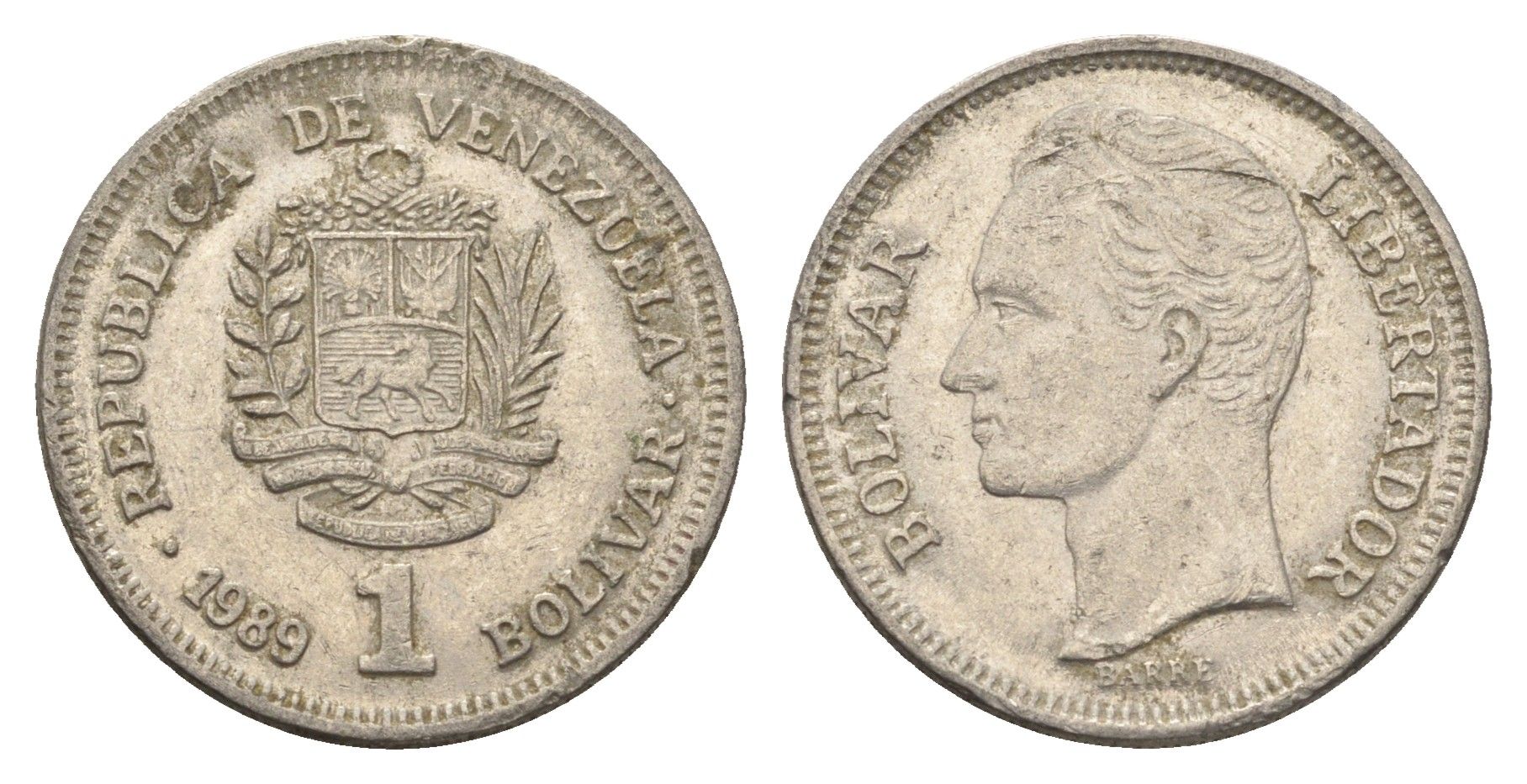Венесуэла 1 боливар 1989 Симон Боливар, тонкий шрифт Y 52a.1 сталь плакированная никелем 4662-851