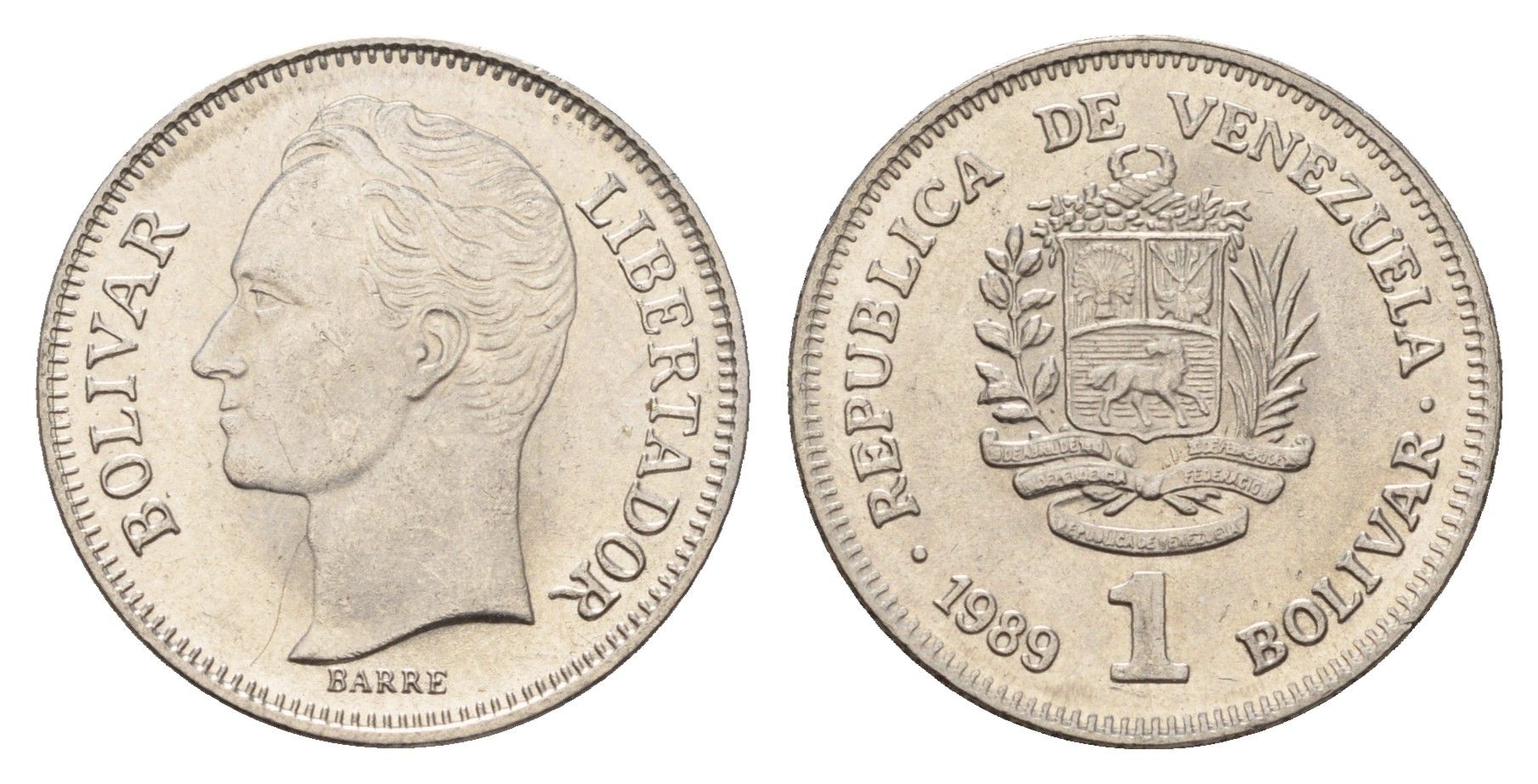 Венесуэла 1 боливар 1989 Симон Боливар Y 52a.1 сталь плакированная никелем aUNC 4116-214