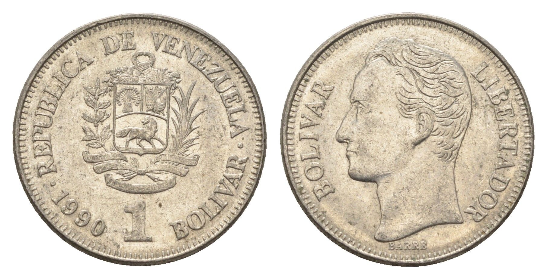 Венесуэла 1 боливар 1990 Симон Боливар Y 52a.2 сталь плакированная никелем 4662-913