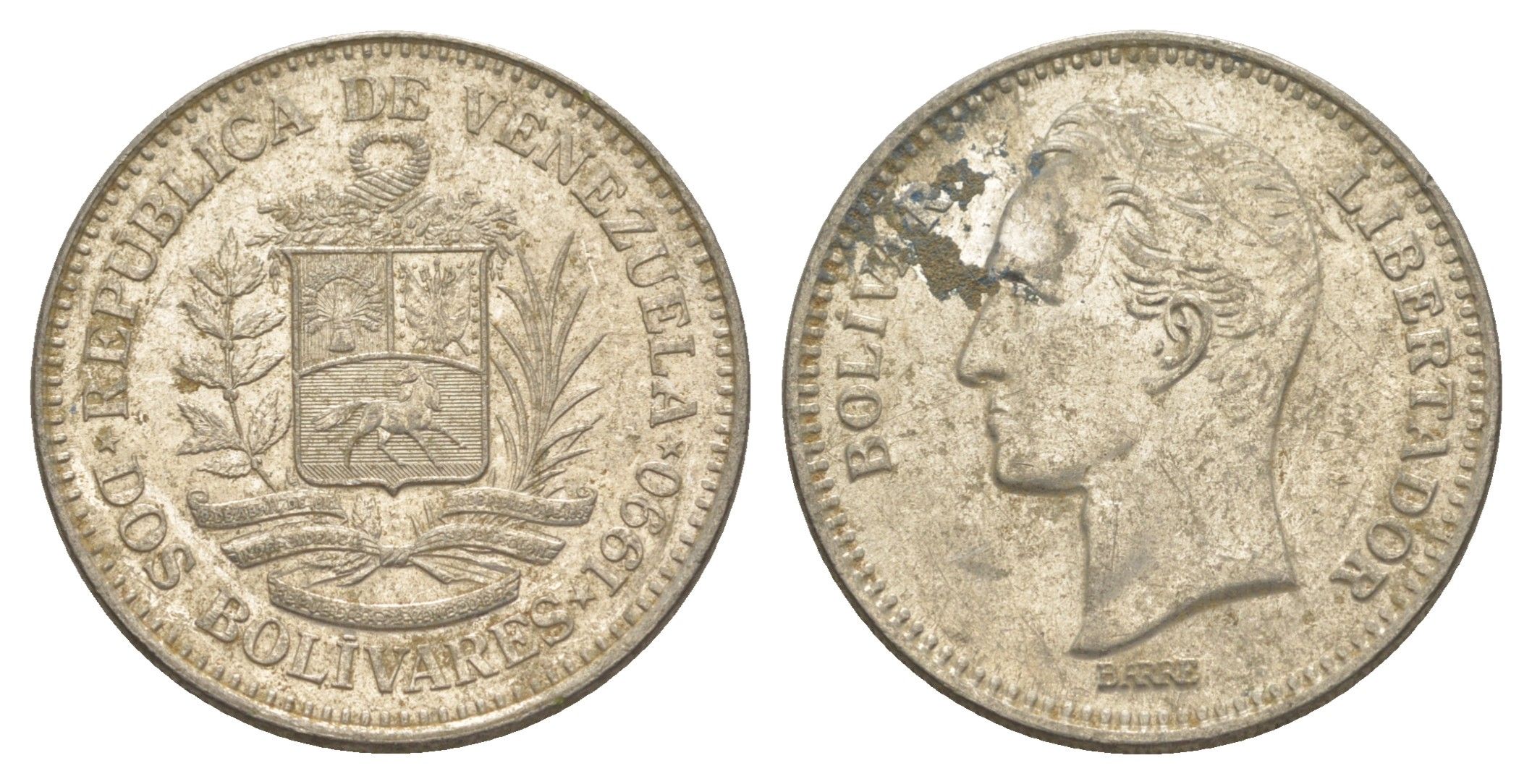 Венесуэла 2 боливара 1990 Симон Боливар Y 43a сталь плакированная никелем 4583-631