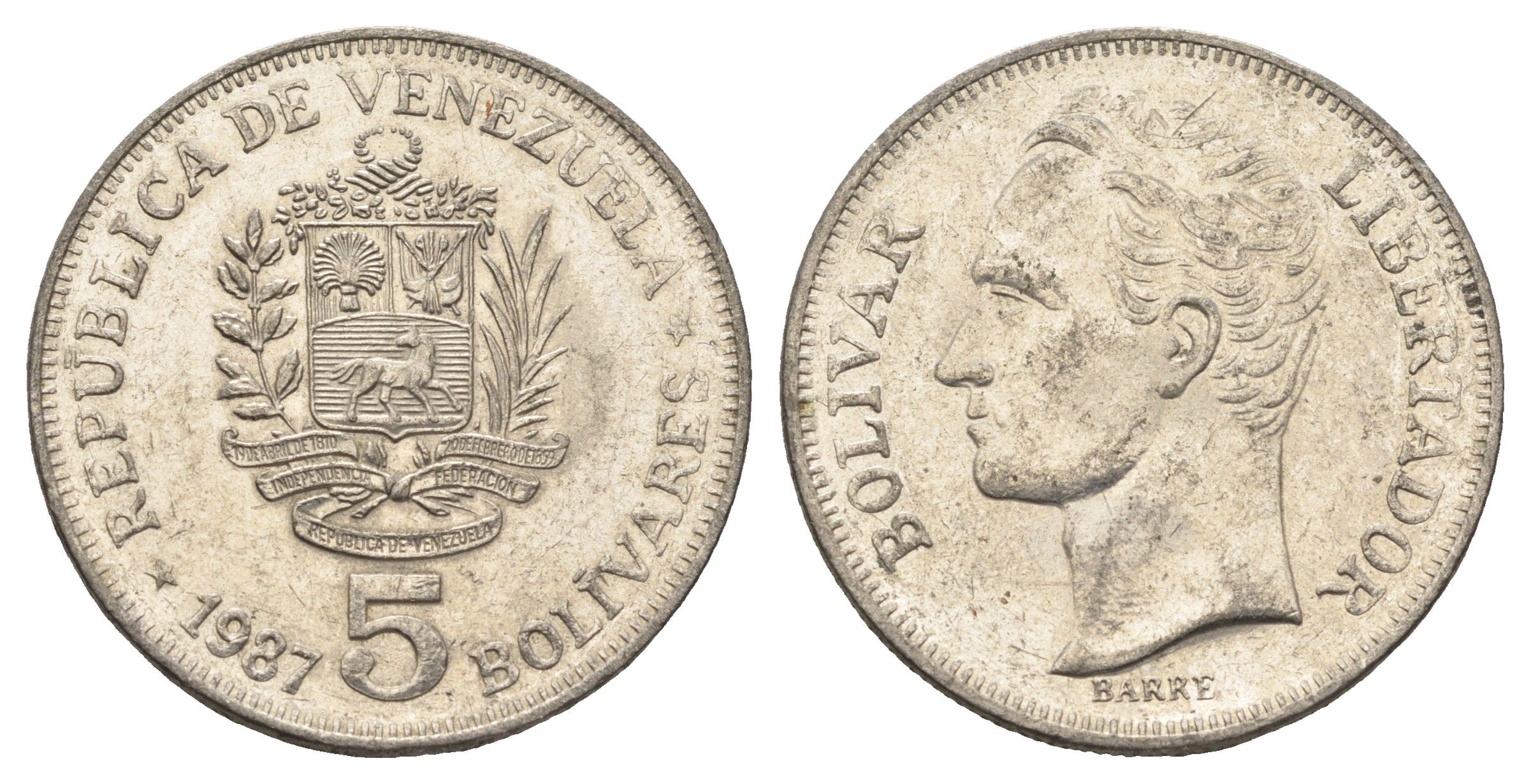 Венесуэла 5 боливаров 1987 Симон Боливар Y 53 никель 4661-314