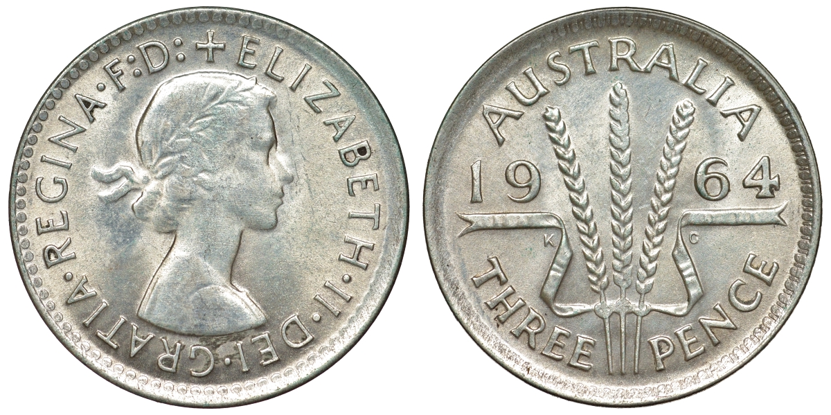 Австралия 3 пенса 1964 Елизавета II (1953-) KM 57 серебро 71-1019