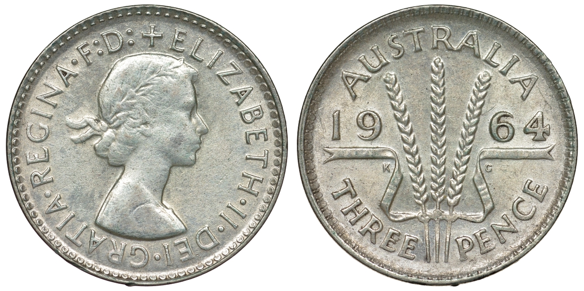 Австралия 3 пенса 1964 Елизавета II (1953-) KM 57 серебро 71-954