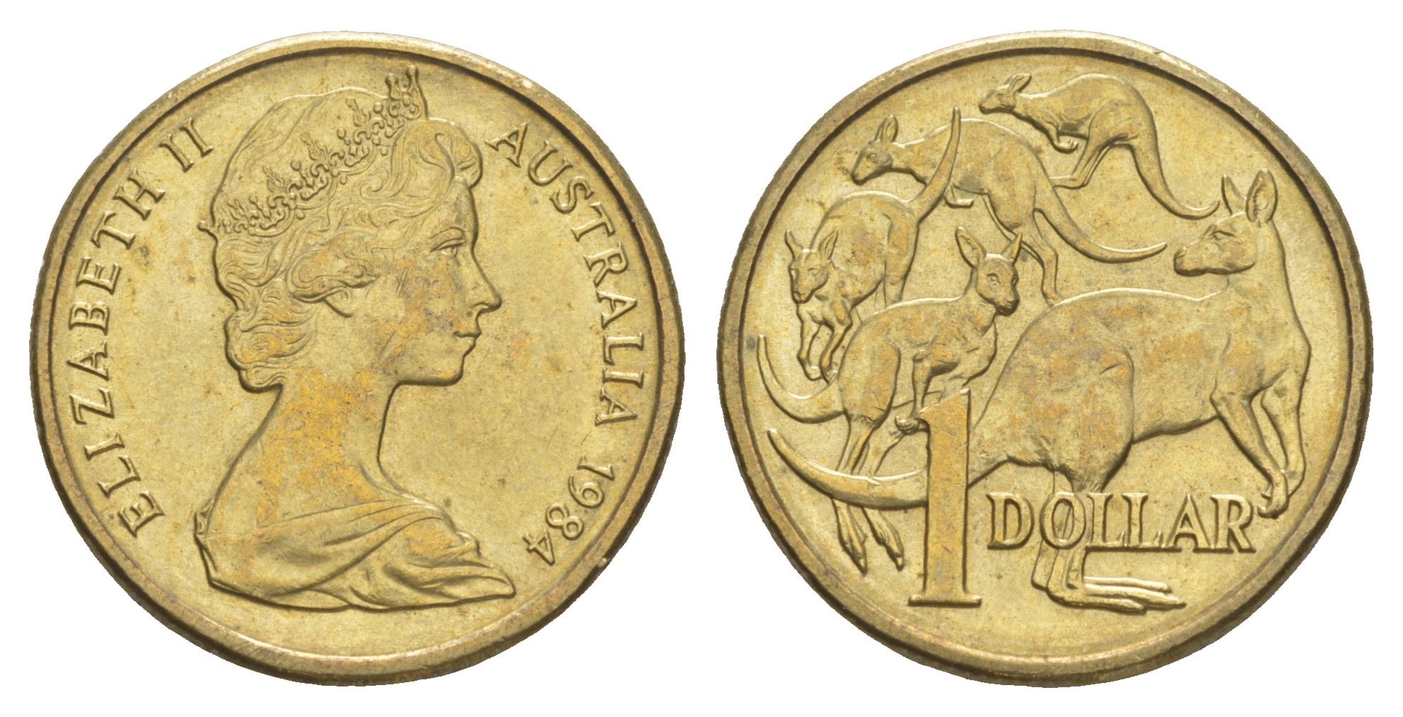 Австралия 1 доллар 1984 Елизавета II (1952-2022), кенгуру KM 77 алюминиевая бронза UNC 4652-157
