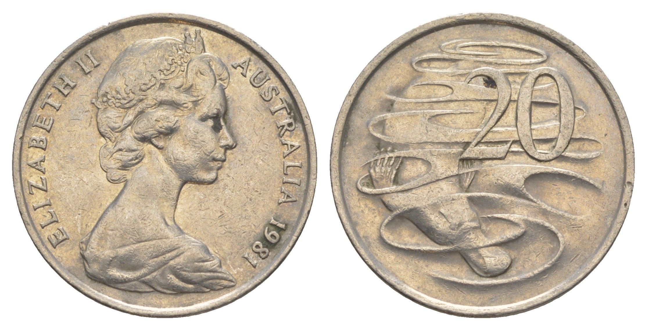 Австралия 20 центов 1981 Елизавета II (1952-2022), утконос KM 66 медно-никель 4379-1151