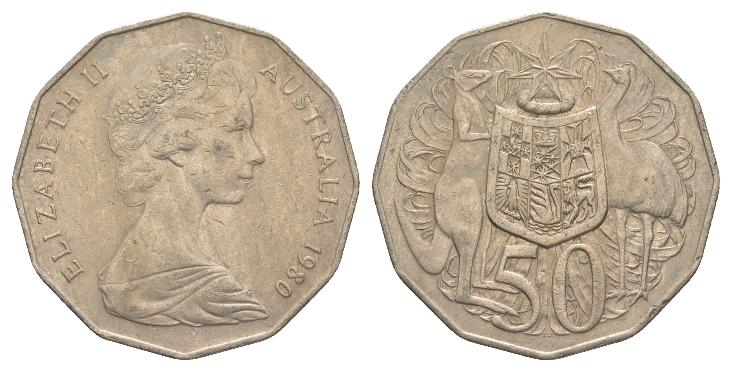 Австралия 50 центов 1980 Елизавета II (1952-2022), герб Австралии, кенгуру KM 68 медно-никель 4381-111