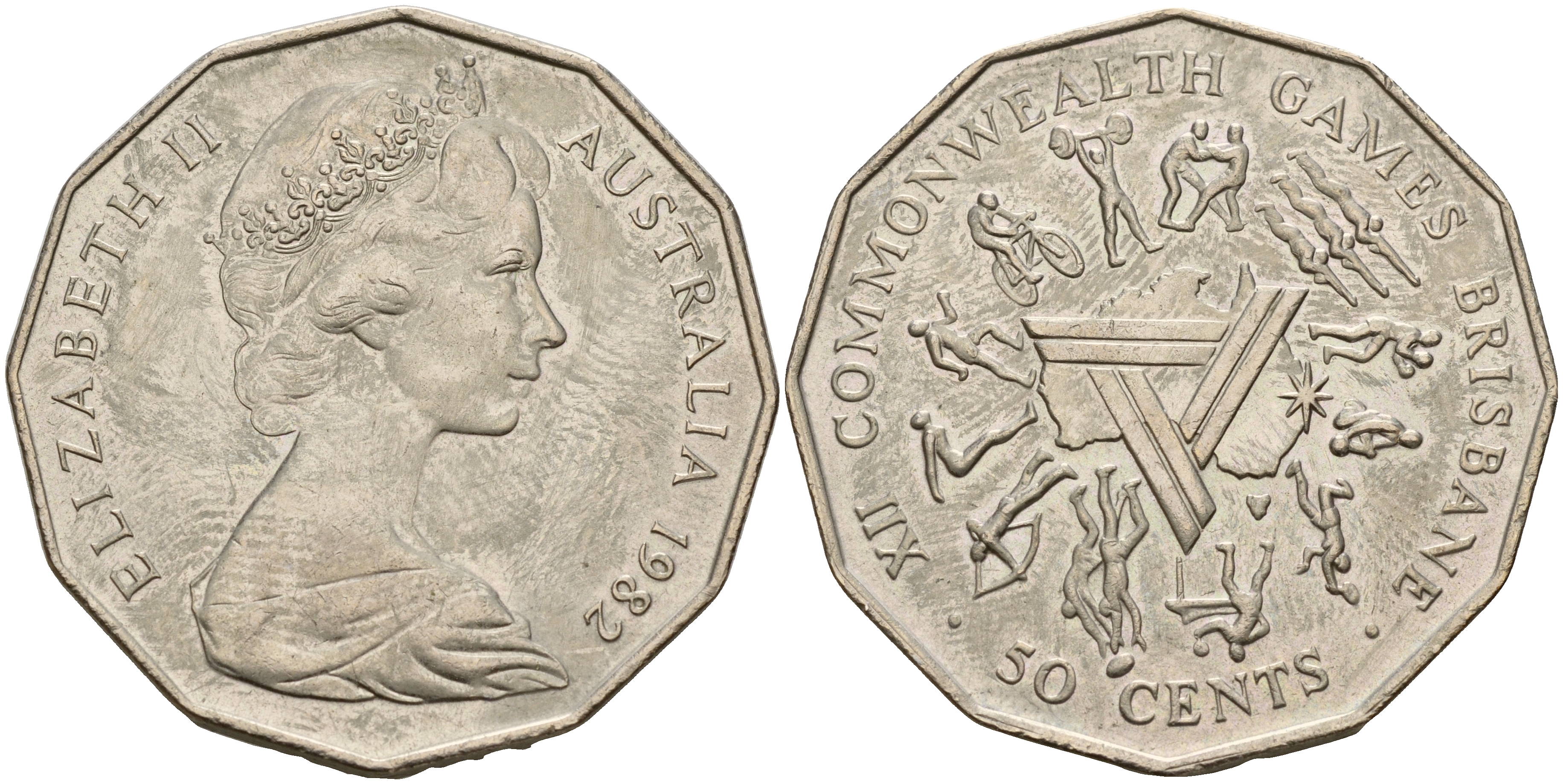 Австралия 50 центов 1982 Елизавета II (1952-2022), XII игры стран Британсого содружества KM 74 медно-никель UNC 4157-933