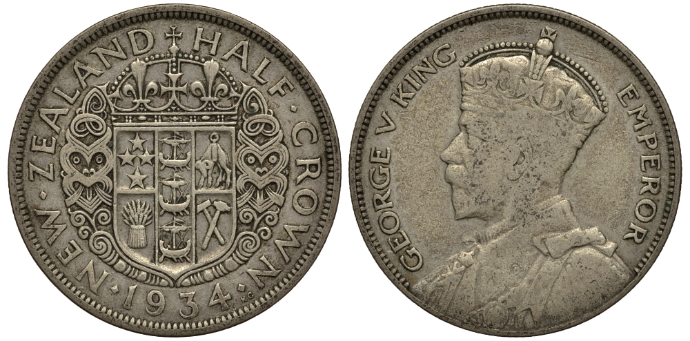 НОВАЯ ЗЕЛАНДИЯ 1/2 КРОНЫ 1934 ГЕОРГ V KM 5 серебро 272-812