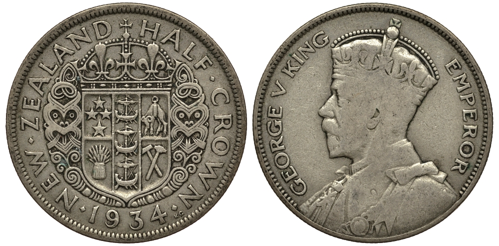 НОВАЯ ЗЕЛАНДИЯ 1/2 КРОНЫ 1934 ГЕОРГ V KM 5 серебро 272-834