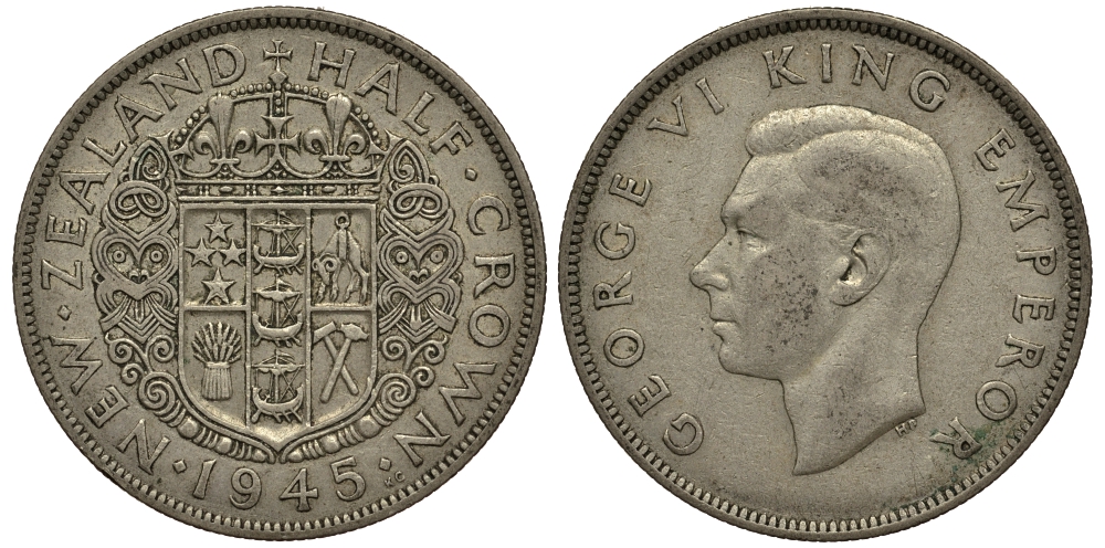 Новая Зеландия 1/2 кроны 1945 Георг VI (1936-1952) KM 11 серебро 272-1034