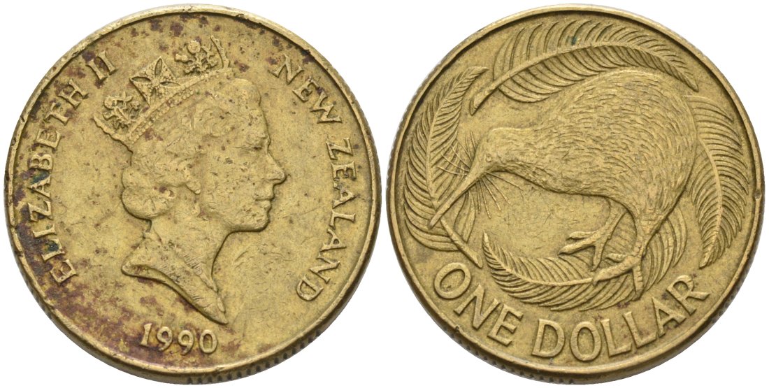 Новая Зеландия 1 доллар 1990 Елизавета II (1952-2022), птица киви KM 78 алюминиевая бронза 29-511
