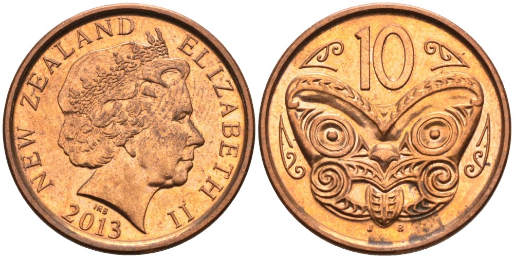 Новая Зеландия 10 центов 2013 маска Маори, Елизавета II (1952-) KM 117а сталь плакированная медью 106-923