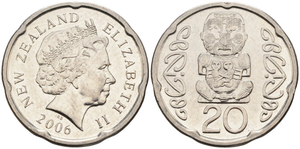 Новая Зеландия 20 центов 2006 Елизавета II (1952-2022), идол Пукаки KM 118а никелированная сталь 4579-1134