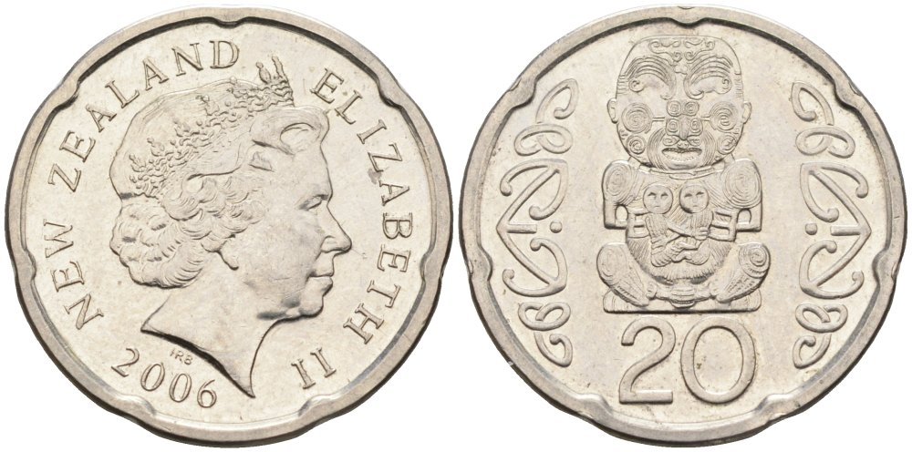 Новая Зеландия 20 центов 2006 идол Пукаки, Елизавета II (1952-) KM 118а никелированная сталь 4579-1135